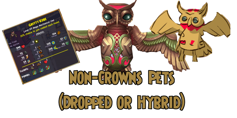 With an update bringing pets (and hybrids), you would hope that there is at least one hybrid anyway. The only pet that has been discovered without a crowns symbol, so far, is the Mechanical Owl. It also appears on the game launcher for Pirate101, so it must be in the game somewhere.