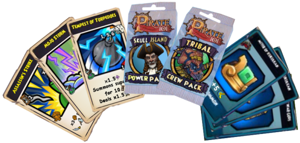 Ian mentioned “trading cards” as a possible merchandise idea, and I decided to expand on that concept, specifically in Pirate101.