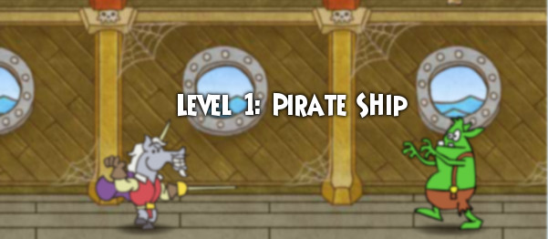 On level 1, your enemies will consist of Blood Bats and Gobblers. It has an abundance of obstacles (barrels) and has a 5-heart Gobbler Pirate boss at the end. Think you can take it on?
