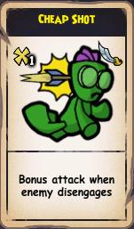 This is a first look at the Battle Board. In the lower left you’ll see which of your crew needs orders to attack for the round. It moves from left to right. In the above picture, in my square on the screen there’s a curved arrow pointing to a Troggy. I’m using a special ability. The companion has a straight arrow, that means he’s using a normal attack and is moving to the square with the arrow in it, then attacking the Troggy. I used my special ability/power by pressing a square at the bottom of the screen, near to “All your units have orders.” When you have your mouse over the enemy you are about to attack, (before you click on them), above your Powers it says “Your attack will do ## average damage to ______.”