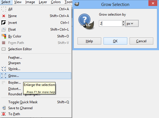 11. After that, go to Select ➜ Grow, then increase the selection by 2. This is so the glow will go outside of the symbol. (Picture)