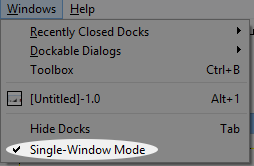 2. If it’s all separate windows and you want to combine them like shown above, navigate to one of the upper menus (File, Edit, Select, etc) and choose Windows ➜ Single-Window Mode. (Picture)