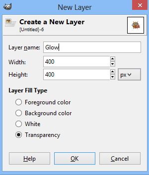 10. Now, create a new layer by going to Layer ➜ New Layer. Name this layer “Glow.” Leave everything else how it is. (Picture)