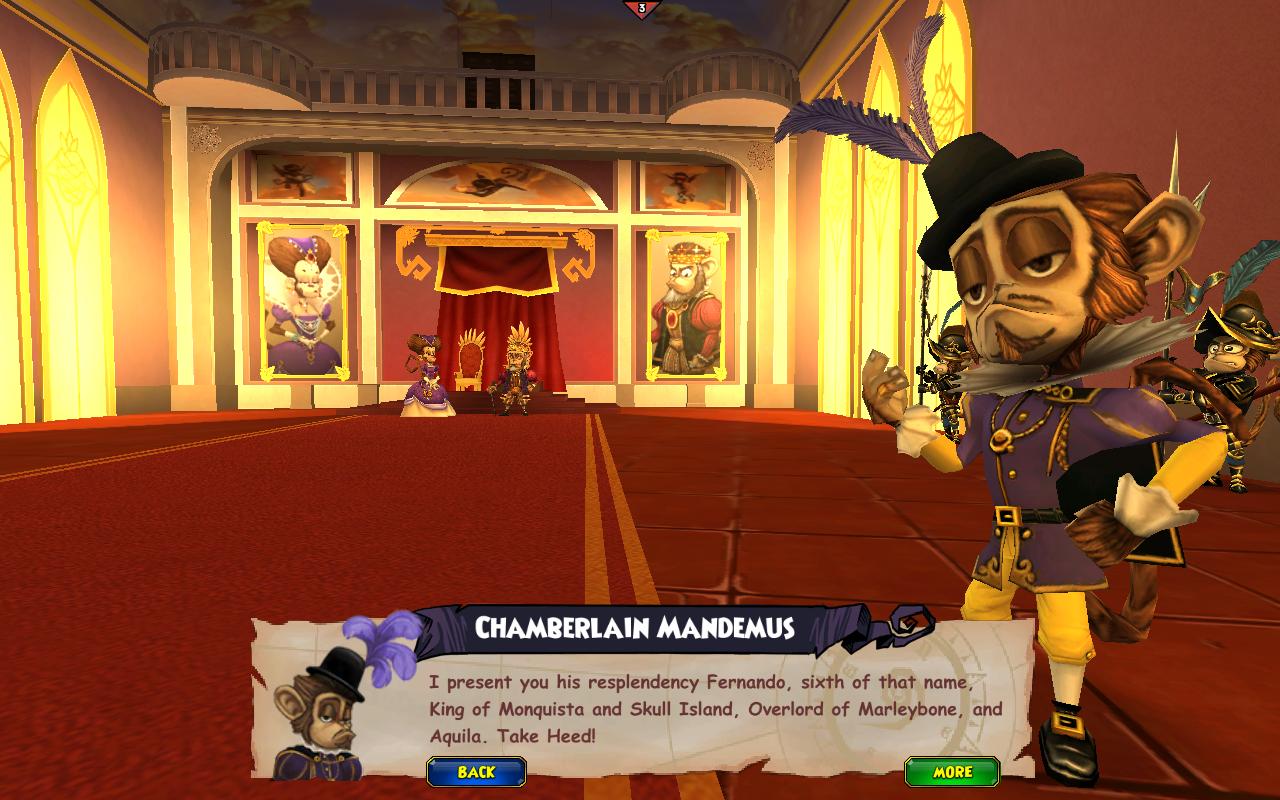 While you’re at the prison, you give a note to the guard that pretty much says, “‘Remove’ the pirate who bears this note. He is now considered an enemy to the Crown.” You free Gortez so he helps you defeat the guards, and the prison is turned into the Opposition Headquarters. All of the time in Monquista you are helping the Opposition gain more followers, and make a plan. The final plan is to get the Monkey’s Paw, which lies at the end of an hour dungeon, which acts like a genie- it grants you 3 wishes. On the last day, we went back to Skull Island to diffuse rumors Captain Avery made about us having the map to El Dorado, which is why people kept randomly attacking us. Hmm.