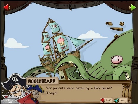 Again, the “Yar!” and “Nar!” are very creative. You can also notice that this is sort of a courage question (candy sails), and won’t be something a Buccaneer would say “Yar!” to. Hopefully, we’ll get more of these questions. Please comment your analysis, or what could be more questions! I really like it when people comment, and it would help me make improvements to the blog. Comment whenever you can!