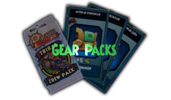 Gear Packs include four pieces of gear and one doubloon. The pieces of gear could be any number of hats, outfits, boots, or weapons*. Every pirate starts with 500 health, and this does not change by what piece(s) of gear are equipped.