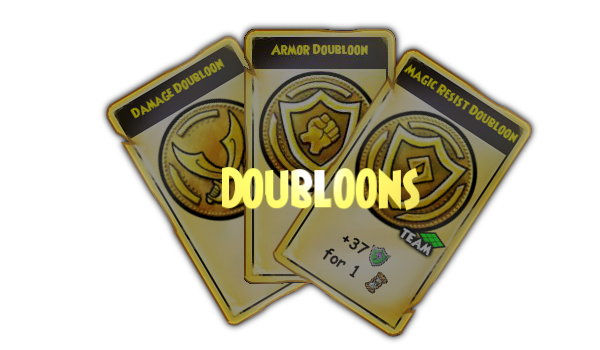 Doubloons would be less diverse than those found in game, but include some not seen in game. Some doubloons are: Stabby Weapon Doubloon (+10 weapon power for stabby weapons, 1 round) ; Armor Doubloon (+5 armor, 1 round) ; Fast (Play two powers this round), etc. In later gear packs, new ranks of doubloons- with different number values- and new doubloons would be available.