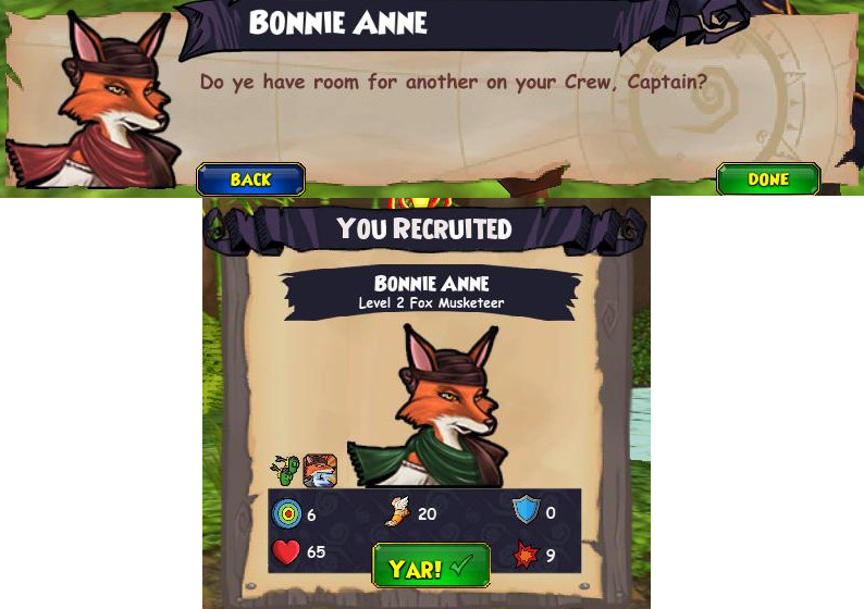 Check out this post I have, it is also really helpful and has this picture! Continuing on; A Companion Promotion is when your companion has reached a specified level and is ready for an upgrade. In other words, your companion physically changes, and gets better! I believe the first Companion Promotion is Bonnie Anne. She goes from a Fox Musketeer to a Fox Sharpshooter. You have to meet her in a Tavern and do a small questline to upgrade her. Below is the original Bonnie Anne. (She is upgraded on the picture above.)