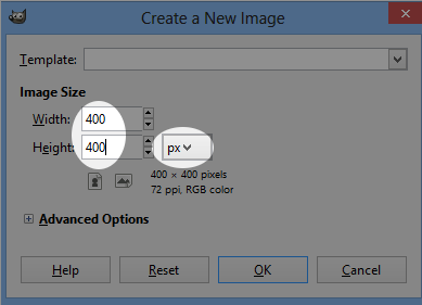 3. Now all the windows will be connected together. In my opinion, it’s easier to manage that way. But now, to make your first picture! Go to File ➜ New to make your first image. It will ask you what the dimensions you want are. For what we’re doing, you should make a 400 x 400 pixel image. (Picture)